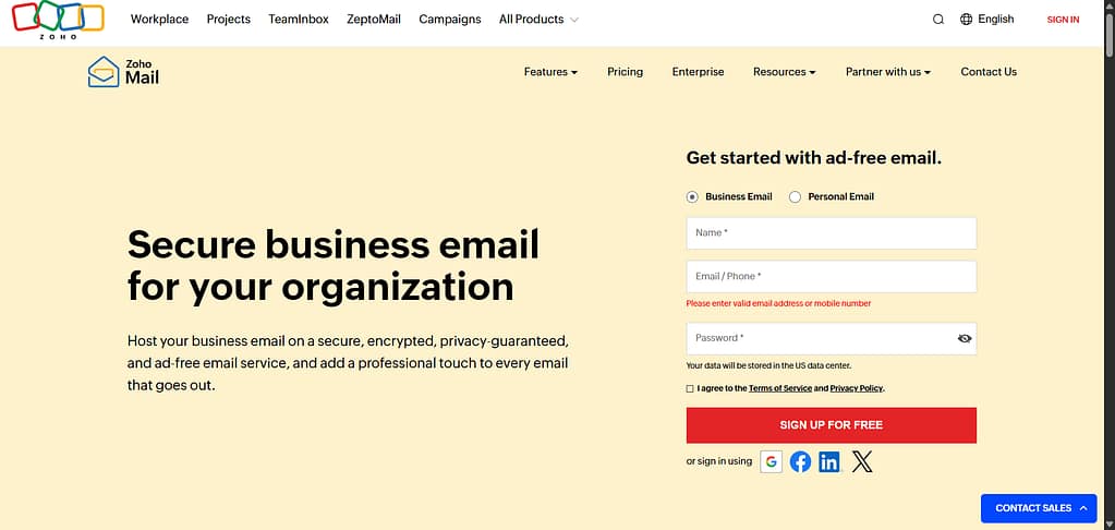 Visit the Zoho Mail Website
